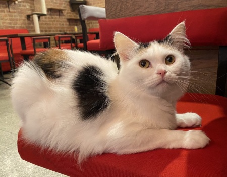 Цианею волонтёры нашли в Клину вместе с двумя котятами. Малышам удалось найти хозяев довольно быстро, а их прекрасная мама ищет любящую семью в нашем котокафе.