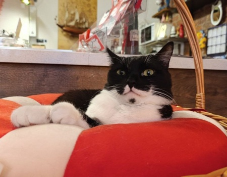 Мальчик проявил все лучшие кошачьи качества - скромный, ласковый, красивый. Поэтому волонтёры решили найти ему новый дом через наше котокафе.