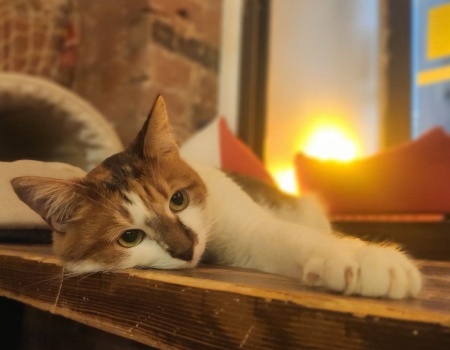 Пеструшка - из забытых в дачном посёлке котят. Волонтёры наши её вместе с такими же малышками-сестрёнками. Постепенно девочки находят дом и обретают семью. Пеструшка ищет своё счастье в нашем котокафе.